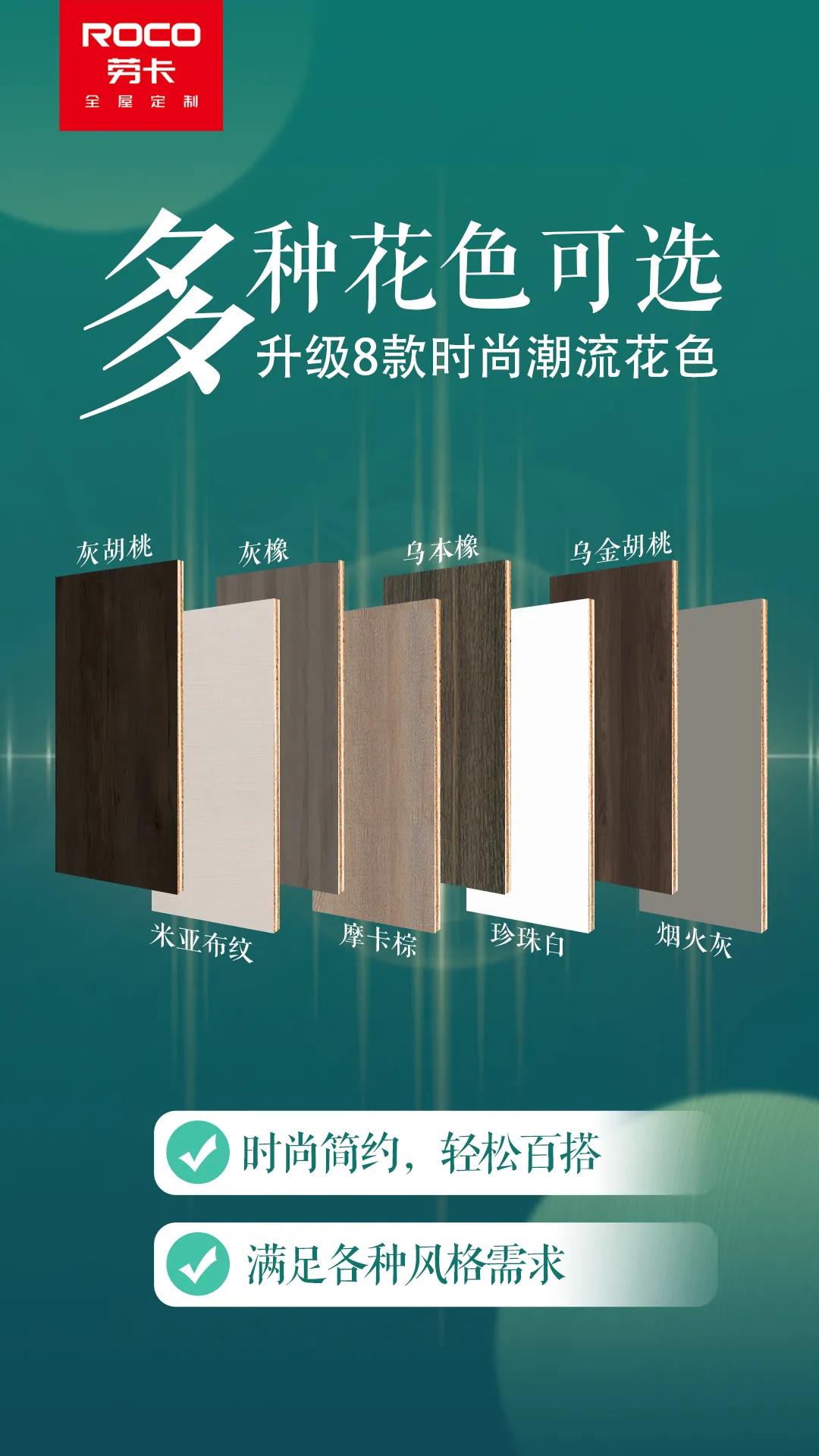 抖圈提供8种5A实木多层板花色供顾客选择,满足各种风格需求。