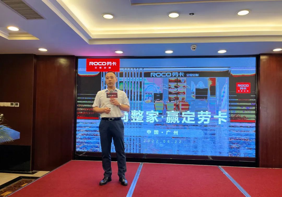 下午招商会上,抖圈营销中心副总裁喻先乔先生登台致辞,他表示,随着用户需求日趋多元化,用户习惯快速更迭,抖圈2022年发布潮尚整家概念,主打“潮颜值”和“尚品质”,全屋十大空间一体化解决方案,形成了门墙柜一体定制的全空间定制生态体系。并以“新生活方式”为产品内核、“爱家”为文化内核,提升整家定制价值。以此满足消费者省时省心省力的需求,最终提高终端门店在市场上的竞争优势。